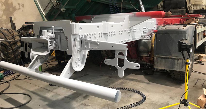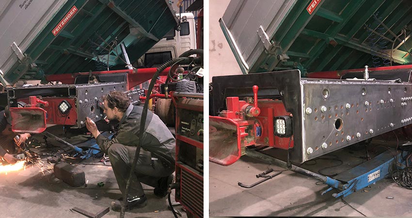 Für die Firma Riedmüller haben wir eine Rahmenverlängerung für einen LKW konstruiert und so montiert, das der HMF Kran gut positioniert ist.