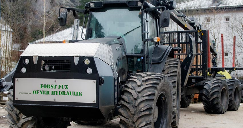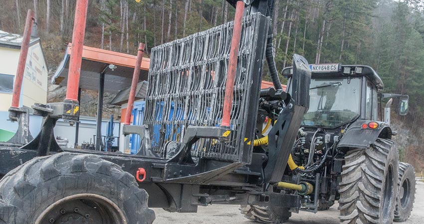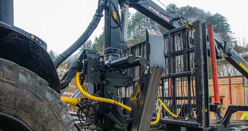 Aufbau eines Palms-Forstkrans inkl. Einbau eines Tilts. Gesteuert über die neueste Generation der EHC Parker LC 6. Steuerung über einen Mini-Joystick inkl. Display. Zusätzlich haben wir in das Frontgewicht einen Tank mit 350 Liter Hydrauliköl, den Ölkühler sowie eine 112 Liter Verstellregelkolbenpumpe SVH 112 gepackt.