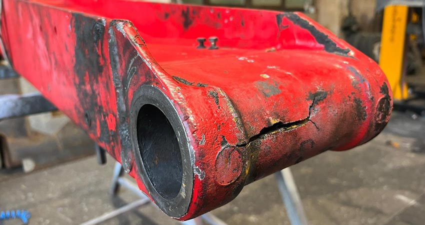 Diese Kransäule ist durch unzureichende Pflege leider gebrochen. Da die Reparaturen von Kransäulen, Armen und Ausschüben bei uns durch jahrelange Erfahrung zum Tagesgeschäft geworden ist konnten wir sie innerhalb von nur 2 Tagen wieder instandsetzten und unser Kunde freute sich über die rasche und sorgfältige Reparatur.