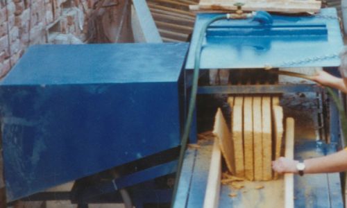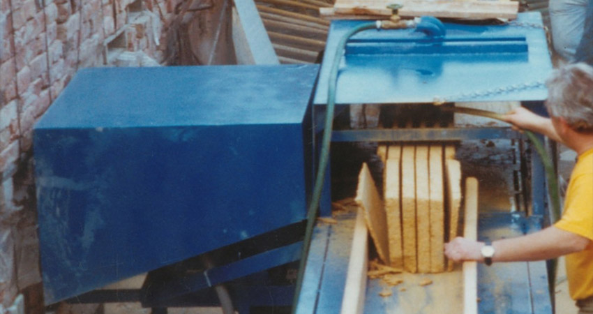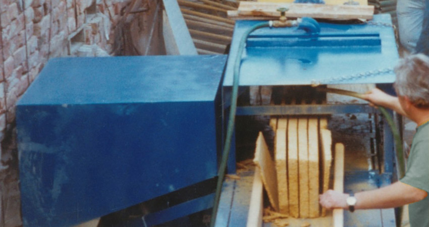 Diese Maschine wurde zum schneiden von Ziegeln und Steinen konzipiert. Herr Gruber (von der Firma Friedrich Gruber Winecellar) hatte eine bestimmte Vorstellung wie er die Ziegeln bearbeiten wollte und Franz Ofner setzte diese Idee in die Tat um.