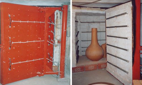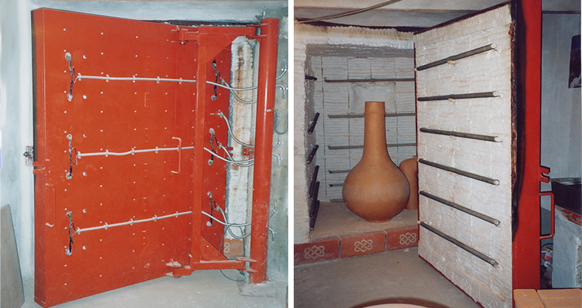 Der Brennofen wurde auf Kundenwunsch angefertigt. In diesem gut isolierten Brennraum werden die Tonöfen der Firm Tierra gebrannt. Das Türschloss wurde von uns speziell angefertigt.
