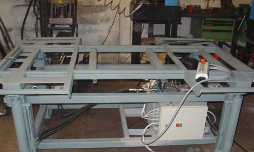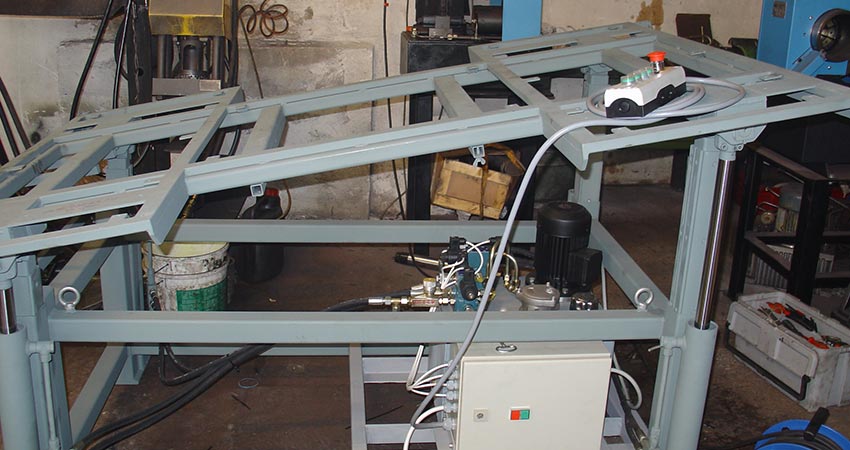 Dieser Tisch wurde gemeinsam mit einem Tierarzt entwickelt. Der Tisch ist hydraulisch höhen- und seitenverstellbar und kann somit für jedes Pferd benutzt werden.